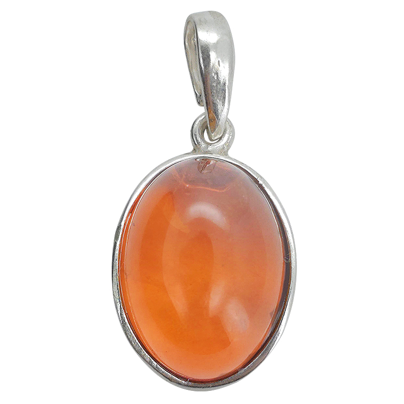 Cognac Amber Sterling Silver Pendant. An oval-shaped amber stone is set in .925 sterling silver. Genuine Baltic amber pendant.