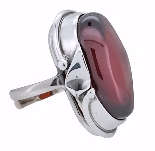 Cherry Amber Sterling Silver Adjustable Ring. The oval-shaped amber stone is set in .925 sterling silver. Genuine Baltic amber ring.