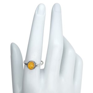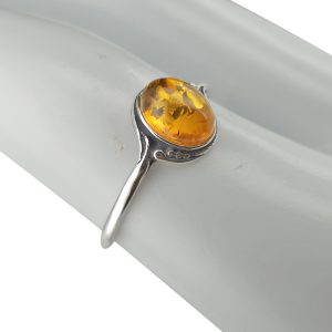 Cognac Amber Sterling Silver Oval Ring. An oval-shaped amber stone is set in .925 sterling silver. Genuine Baltic amber ring.
