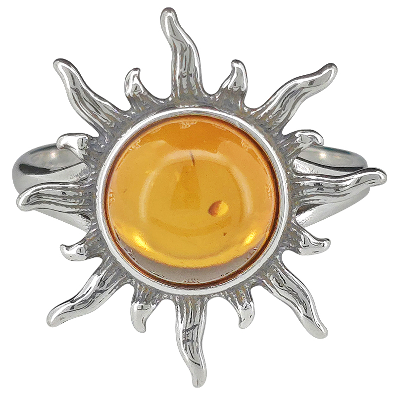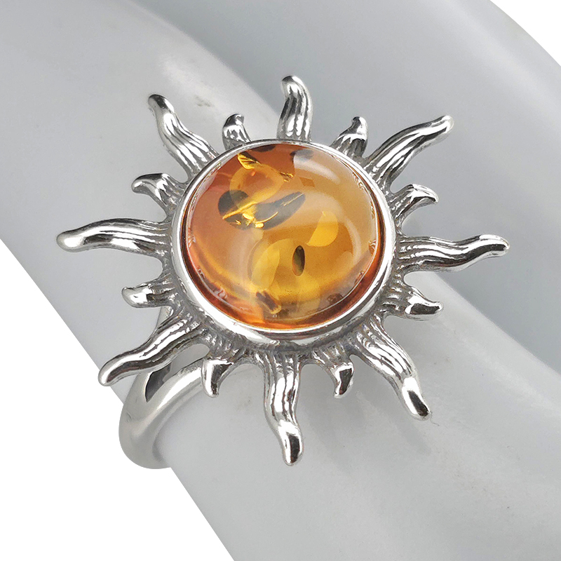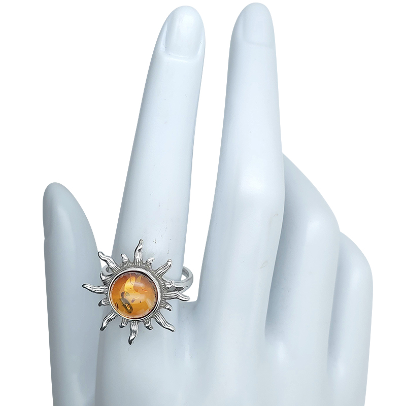 Tags: 925 Sterling silver, amber, Baltic amber, ring, sun ring
